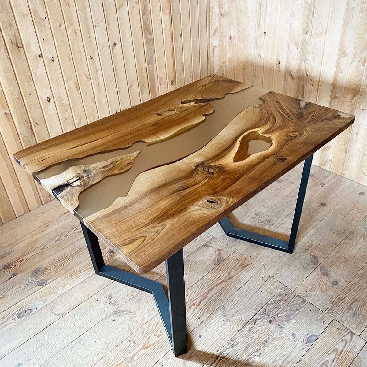 Оригінальний журнальний стіл виготовлений з масиву горіха, між якими протікають річки з епоксидної смоли неймовірної краси. Неповторний колір масиву горіха, в поєднанні з річками смоли роблять цей стіл справжнім шедевром. Стіл виготовлений з екологічно чистих матеріалів, стійкий до вологи, не вигорає і не жовтіє на сонці.